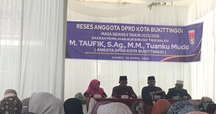 Bukittinggi — Anggota DPRD Kota Bukittinggi, M. Taufik, S.Ag., M.M., Tuangku Mudo, melaksanakan kegiatan reses masa sidang II tahun 2025/2026 di Daerah Pemilihan Aur Birugo Tigo Baleh (ABTB), dengan menyerap berbagai aspirasi masyarakat, mulai dari persoalan infrastruktur, pendidikan hingga sosial kemasyarakatan.